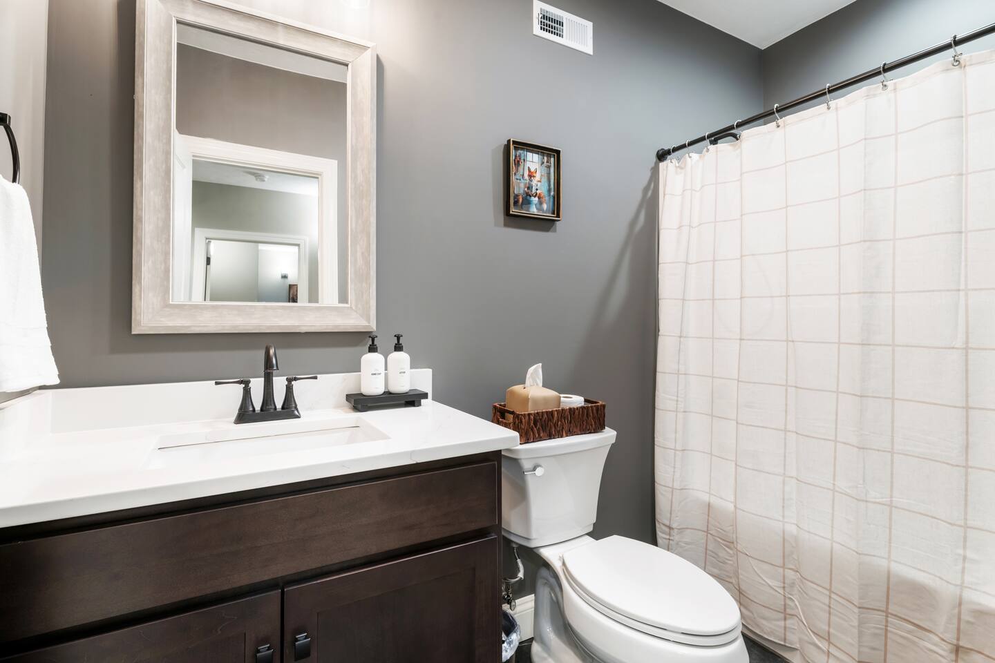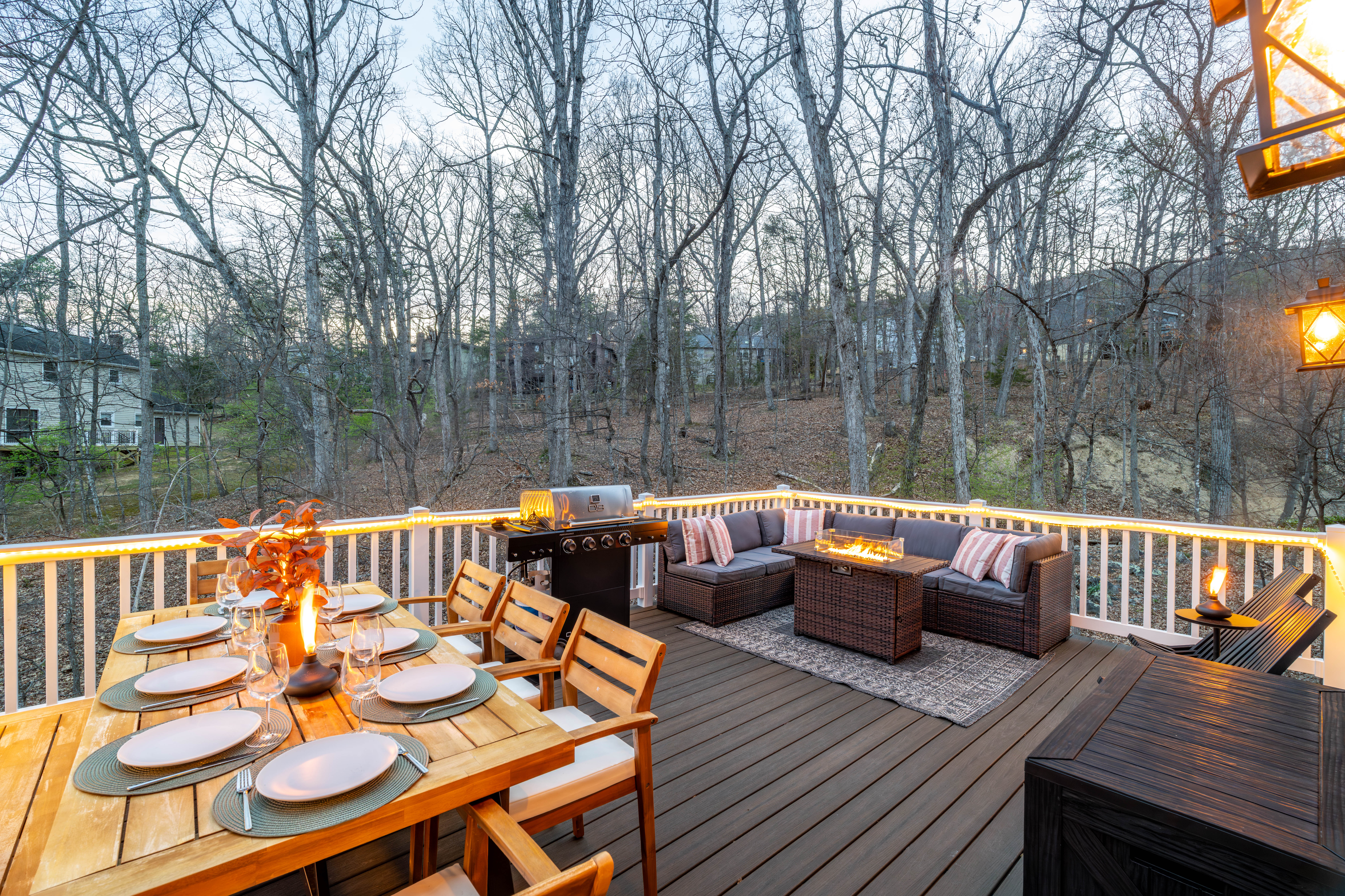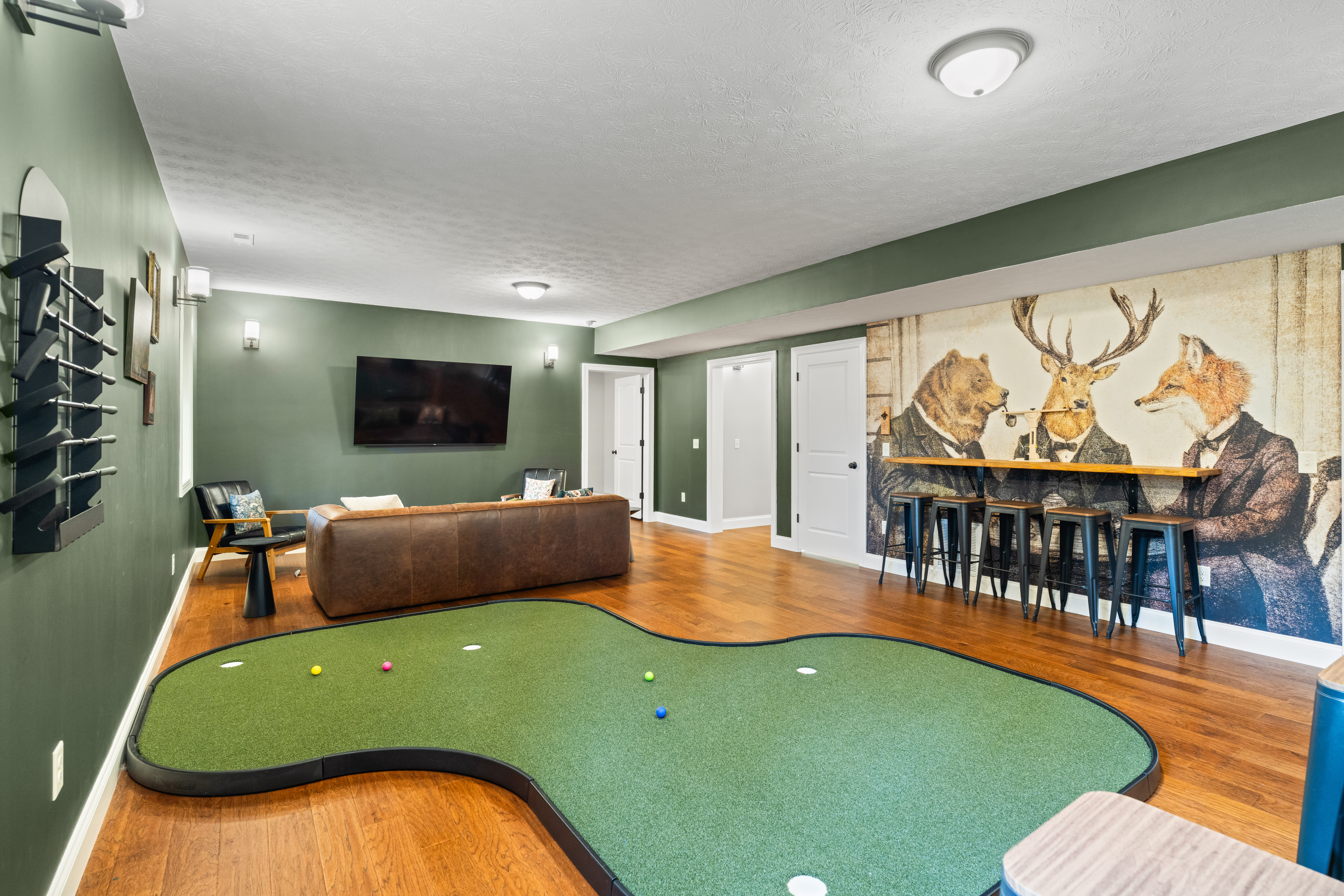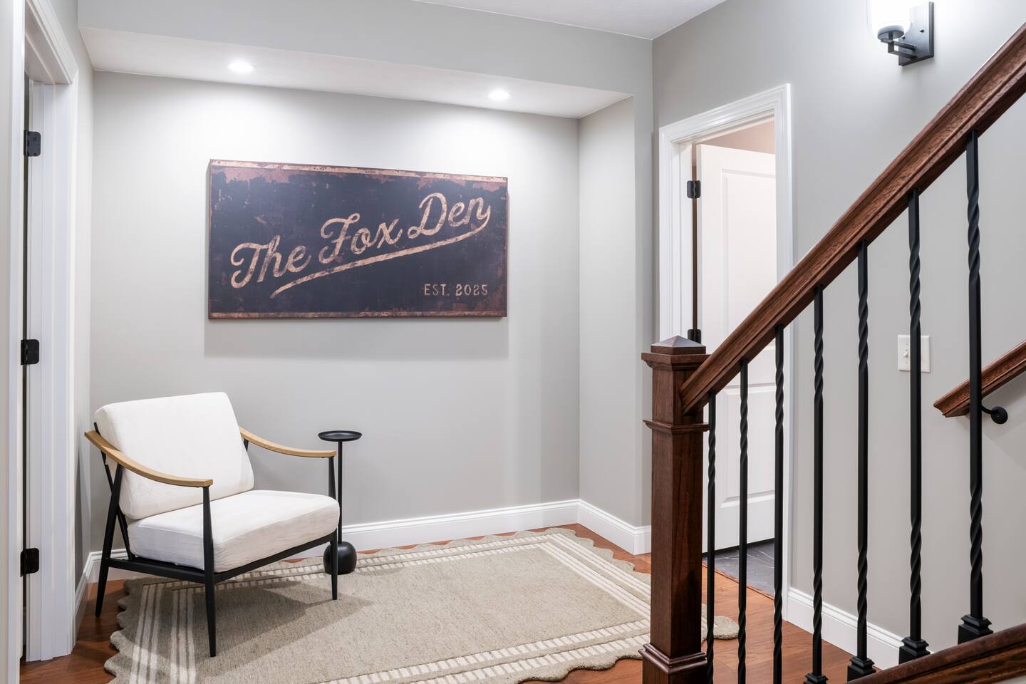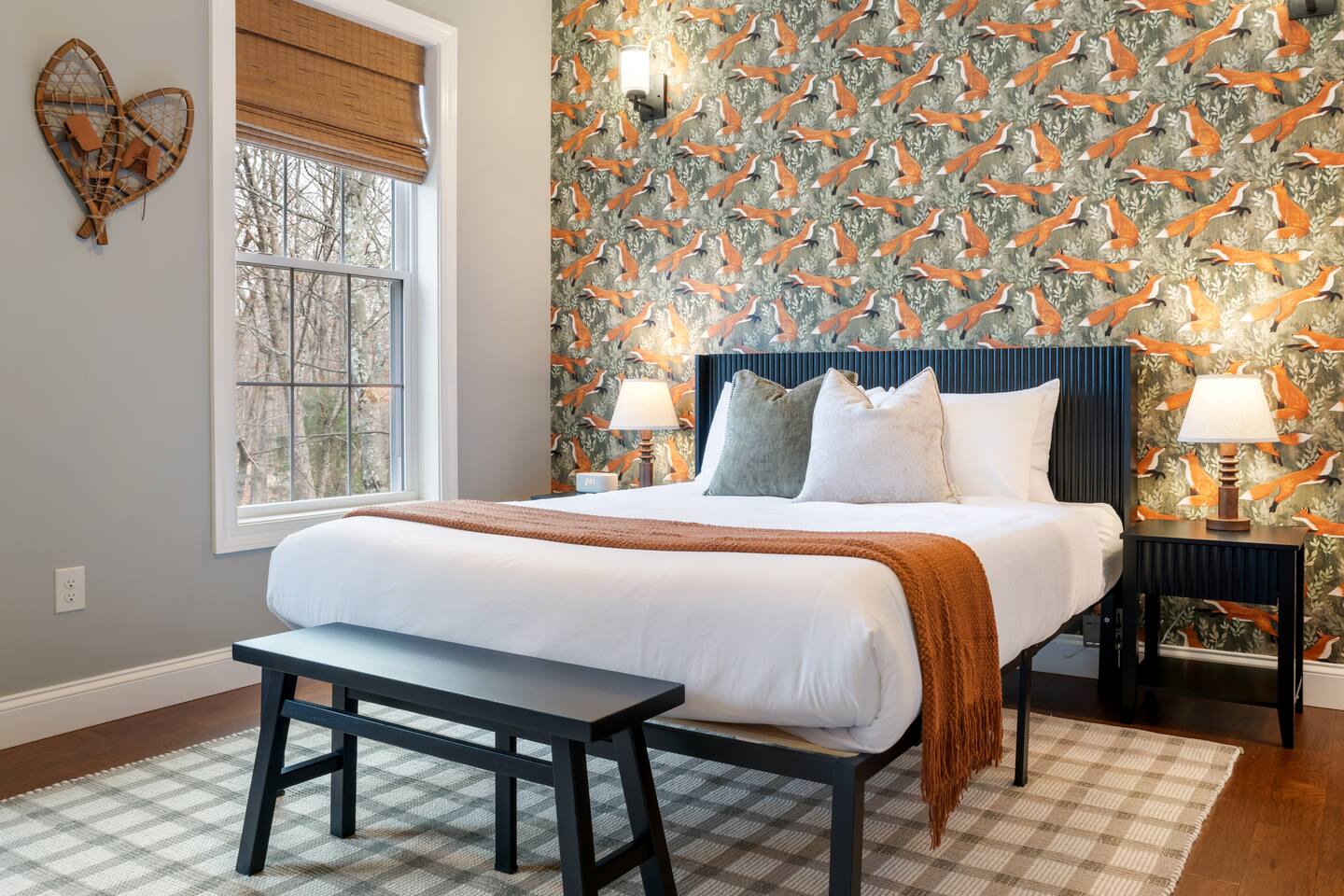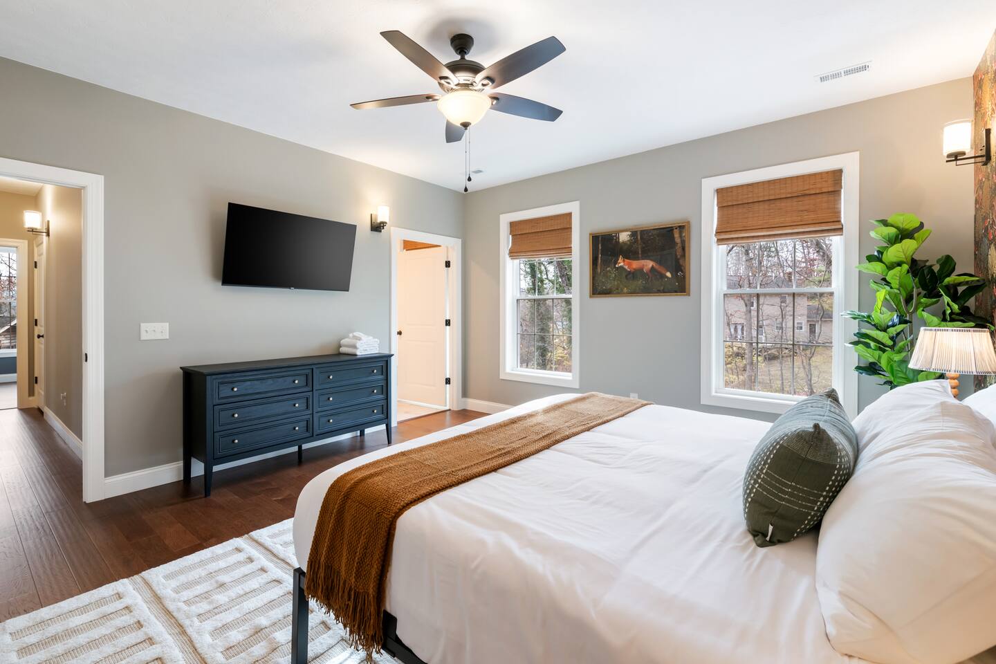 Whether you choose to stay in and enjoy all of the amenities, or explore all that the resort has to offer, The Fox Den has it all! Inside, enjoy 3 levels of well-appointed bedrooms, bathrooms and living spaces, including TWO game rooms, and three en-suites on the top level, each individually curated with a different fox motif. Venture outside to enjoy three separate outdoor areas — a deck with dining, seating and a fire pet, patio with hot tub and ambient lighting, and two seating options on the covered front porch perfect for that morning cup of coffee. With close to 5,000sf of living space, guests can enjoy the following: LIVING ROOM Spacious living area that all flows together from room-to-room, this is truly the heart of the home. Highlights include: ✧ 55” Smart TV with streaming access ✧ Large, oversized sectional for ample seating ✧ Living area room with wraparound sectional for the whole family to cozy up on, an electric fireplace, and bookcases with board games ✧ Entryway with ample coat hooks and shoe storage ✧ Open flow to the kitchen and dining room KITCHEN The fully-equipped kitchen is stocked with every sort of cooking item or entertaining ware you would need for your stay, including two pantries for guest use. Highlights include: ✧ Brand new, stainless steel appliances ✧ Drip and Keurig coffee ✧ Pots, pans and a variety of small appliances and cookware ✧ Indoor and outdoor dining ware as well as kid-friendly ✧ Glasses, glasses and more glasses! Two different sets for indoor and outdoor use ✧ Kitchen island with seating for 4 ✧ Separate dining room with seating for 12 and a buffet with additional entertaining ware for more formal dining occasions PRIMARY BEDROOM Located on the second level, the large primary suite is situated at the rear of the home and includes a luxury ensuite bath — making it your personal retreat and the perfect place to unwind after a day of activities. Highlights include: ✧ King bed with hotel-grade linens ✧ Blackout shades ✧ 50” Smart TV with streaming access ✧ Dresser and closet space ✧ Extra large ensuite with jetted tub/shower combo, separate water closet, his and hers vanity ✧ Full nursery with crib, blackout shades and play area — perfect for the littlest of guests! ADDITIONAL BEDROOM AND BATHROOMS There are 5 additional bedrooms spread out across the three levels. Kids and parents alike can have their own private sanctuaries with bedrooms designed with each in mind on the top and lower levels. Highlights include: ★ Bedroom 1 (main level): Queen bed, blackout shades, dresser, 43” Smart TV, closet ★ Bedroom 2 (second level): King bed, blackout shades, desk and workspace, 43” Smart TV, closet, ensuite bath with shower/tub combo ★ Bedroom 3 (second level): Queen bed, blackout shades, dresser, 43” Smart TV, closet, ensuite bath with shower/tub combo ★ Bedroom 4 (lower level): Two Queen beds, blackout shades, dresser, 43” Smart TV, closet, wall-mounted Connect 4 ★ Bedroom 5 (lower level): L-shaped bunk beds with 4 twin beds + trundle, blackout shades, dresser, 43” Smart TV, infinity game table (with loads of digital board games) GAME ROOMS There are two game rooms for guest enjoyment. The lower level is a true entertainment hub complete with arcade games, putting green and bar area. On the second level, guests can enjoy a board game area with a chess table and a separate reading nook. Highlights of the lower level game room include: ✧ 4 hole putting green ✧ 3 arcade games (Golden Tee, NBA Jam, Pacman) ✧ Bar area ✧ 75” Smart TV and seating area ✧ Bluetooth speaker ✧ Bar games OUTDOOR SPACE There are three outdoor areas for your enjoyment! Whether it’s coffee in the morning, a meal in the evening, or a sunset soak, the outdoor area provides a tranquil escape on the resort. Highlights include: ✧ Hot tub with ambient lighting and towel hooks (fits 7) ✧ Propane fit pit area (seats 8, propane provided) ✧ Dining table (seats 8) ✧ Propane grill (propane provided) ✧ Rocking chairs and glider under a covered front porch LOCATION ✔ 5 minutes to Massanutten Resort (slopes, pool, adventure course) ✔ 6 minutes for golf course(s) ✔ 6 minutes to the Indoor/Outdoor Waterpark ✔ 20 minutes from Swift Run Gap entrance of Shenandoah National Park ✔ 25 minutes to Harrisonburg & JMU ✔ Close to highway access for hiking, wineries, breweries, dining and scenic drives