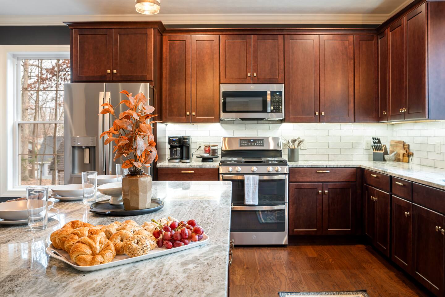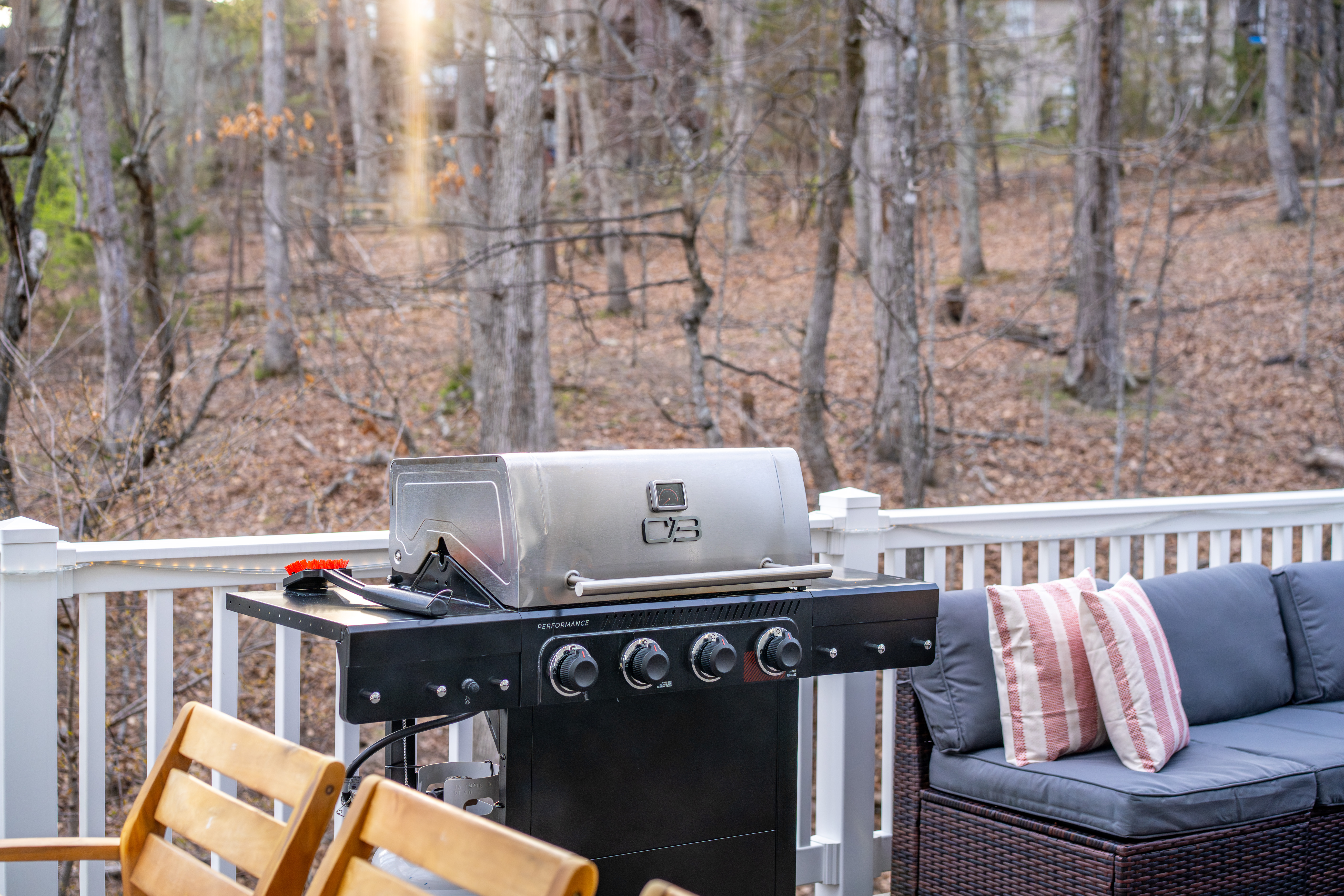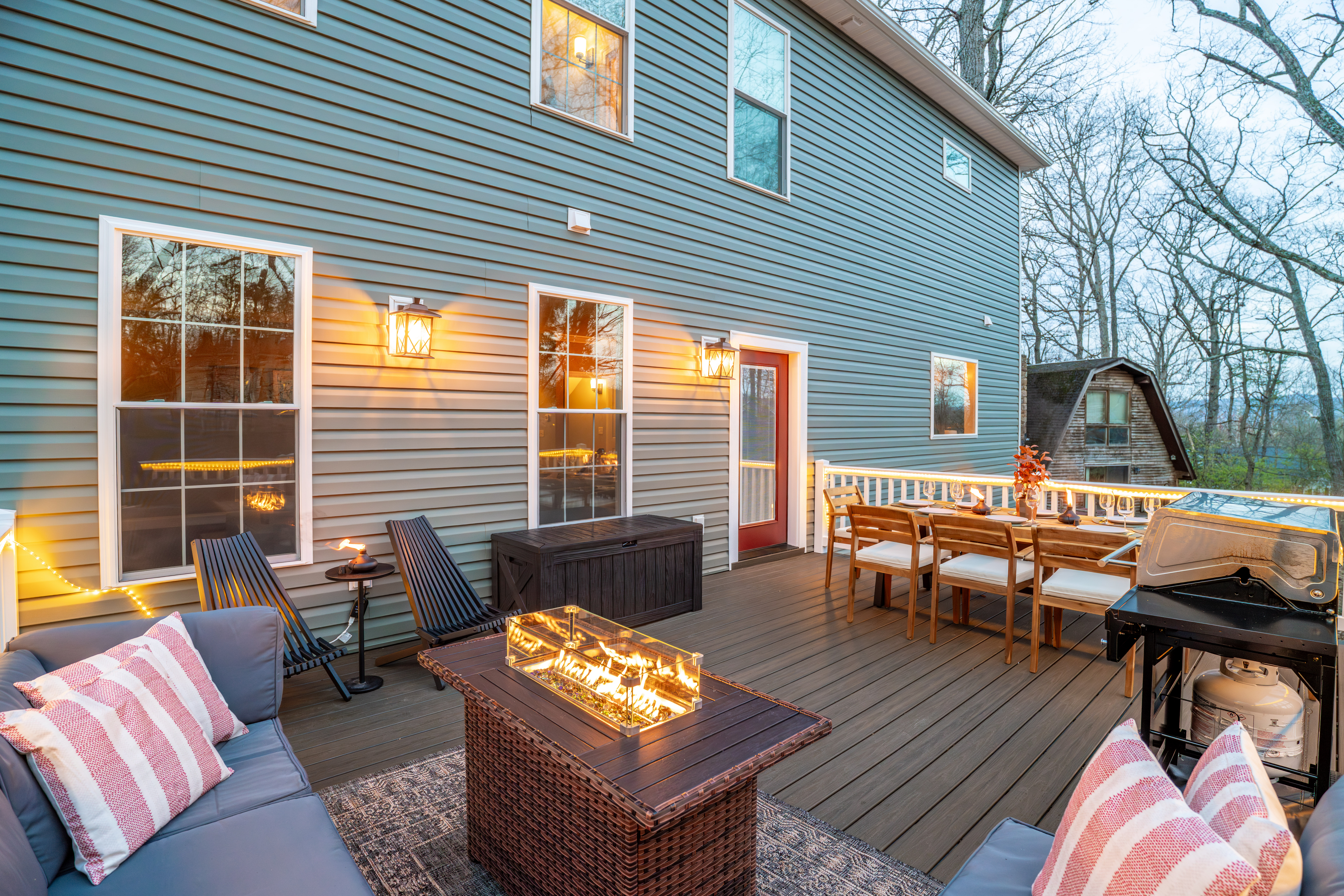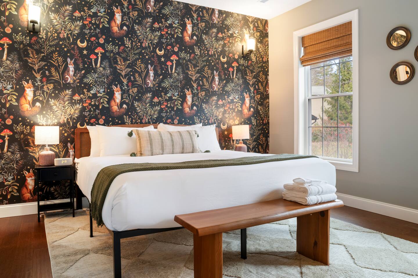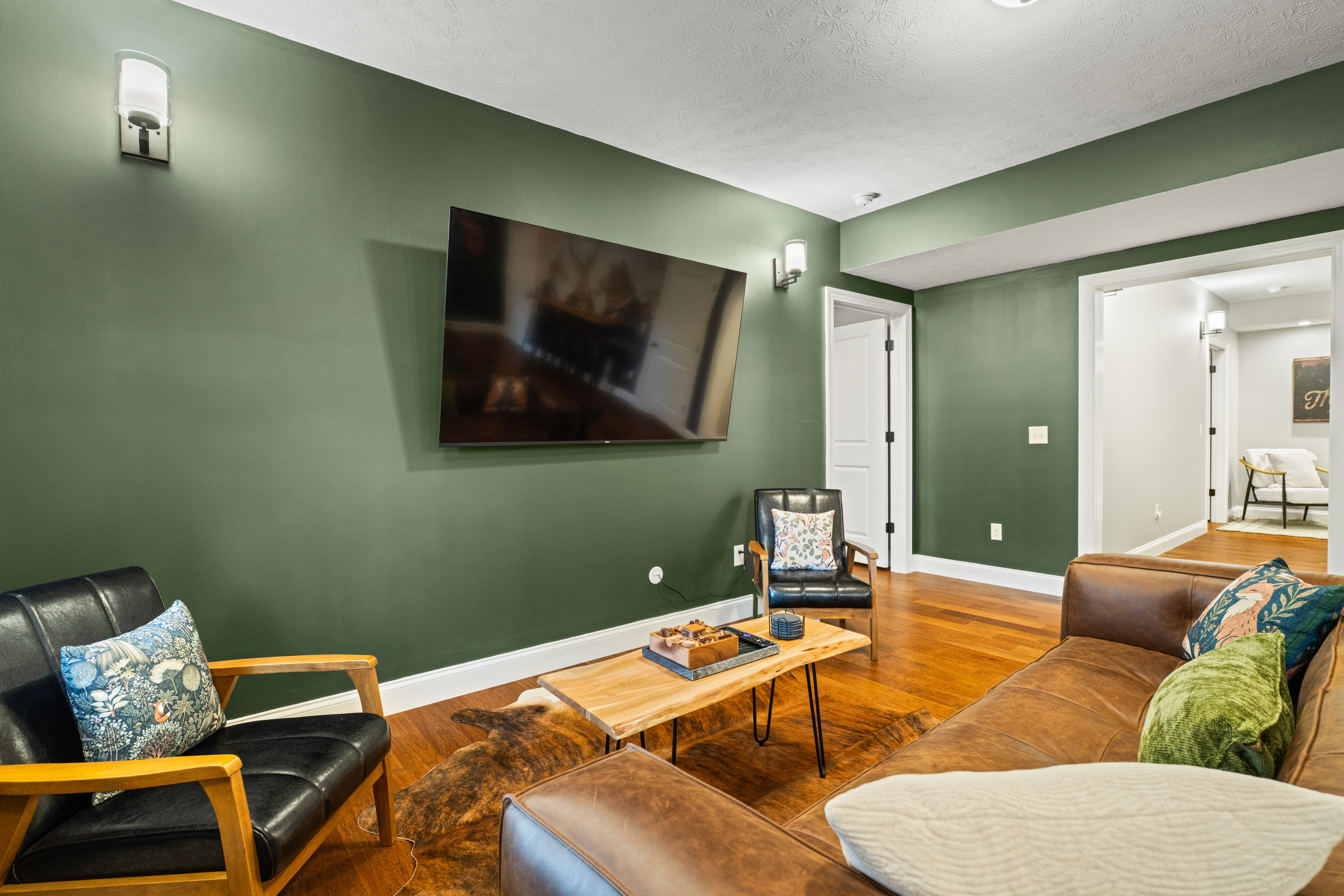 Whether you choose to stay in and enjoy all of the amenities, or explore all that the resort has to offer, The Fox Den has it all! Inside, enjoy 3 levels of well-appointed bedrooms, bathrooms and living spaces, including TWO game rooms, and three en-suites on the top level, each individually curated with a different fox motif. Venture outside to enjoy three separate outdoor areas — a deck with dining, seating and a fire pet, patio with hot tub and ambient lighting, and two seating options on the covered front porch perfect for that morning cup of coffee. With close to 5,000sf of living space, guests can enjoy the following: LIVING ROOM Spacious living area that all flows together from room-to-room, this is truly the heart of the home. Highlights include: ✧ 55” Smart TV with streaming access ✧ Large, oversized sectional for ample seating ✧ Living area room with wraparound sectional for the whole family to cozy up on, an electric fireplace, and bookcases with board games ✧ Entryway with ample coat hooks and shoe storage ✧ Open flow to the kitchen and dining room KITCHEN The fully-equipped kitchen is stocked with every sort of cooking item or entertaining ware you would need for your stay, including two pantries for guest use. Highlights include: ✧ Brand new, stainless steel appliances ✧ Drip and Keurig coffee ✧ Pots, pans and a variety of small appliances and cookware ✧ Indoor and outdoor dining ware as well as kid-friendly ✧ Glasses, glasses and more glasses! Two different sets for indoor and outdoor use ✧ Kitchen island with seating for 4 ✧ Separate dining room with seating for 12 and a buffet with additional entertaining ware for more formal dining occasions PRIMARY BEDROOM Located on the second level, the large primary suite is situated at the rear of the home and includes a luxury ensuite bath — making it your personal retreat and the perfect place to unwind after a day of activities. Highlights include: ✧ King bed with hotel-grade linens ✧ Blackout shades ✧ 50” Smart TV with streaming access ✧ Dresser and closet space ✧ Extra large ensuite with jetted tub/shower combo, separate water closet, his and hers vanity ✧ Full nursery with crib, blackout shades and play area — perfect for the littlest of guests! ADDITIONAL BEDROOM AND BATHROOMS There are 5 additional bedrooms spread out across the three levels. Kids and parents alike can have their own private sanctuaries with bedrooms designed with each in mind on the top and lower levels. Highlights include: ★ Bedroom 1 (main level): Queen bed, blackout shades, dresser, 43” Smart TV, closet ★ Bedroom 2 (second level): King bed, blackout shades, desk and workspace, 43” Smart TV, closet, ensuite bath with shower/tub combo ★ Bedroom 3 (second level): Queen bed, blackout shades, dresser, 43” Smart TV, closet, ensuite bath with shower/tub combo ★ Bedroom 4 (lower level): Two Queen beds, blackout shades, dresser, 43” Smart TV, closet, wall-mounted Connect 4 ★ Bedroom 5 (lower level): L-shaped bunk beds with 4 twin beds + trundle, blackout shades, dresser, 43” Smart TV, infinity game table (with loads of digital board games) GAME ROOMS There are two game rooms for guest enjoyment. The lower level is a true entertainment hub complete with arcade games, putting green and bar area. On the second level, guests can enjoy a board game area with a chess table and a separate reading nook. Highlights of the lower level game room include: ✧ 4 hole putting green ✧ 3 arcade games (Golden Tee, NBA Jam, Pacman) ✧ Bar area ✧ 75” Smart TV and seating area ✧ Bluetooth speaker ✧ Bar games OUTDOOR SPACE There are three outdoor areas for your enjoyment! Whether it’s coffee in the morning, a meal in the evening, or a sunset soak, the outdoor area provides a tranquil escape on the resort. Highlights include: ✧ Hot tub with ambient lighting and towel hooks (fits 7) ✧ Propane fit pit area (seats 8, propane provided) ✧ Dining table (seats 8) ✧ Propane grill (propane provided) ✧ Rocking chairs and glider under a covered front porch LOCATION ✔ 5 minutes to Massanutten Resort (slopes, pool, adventure course) ✔ 6 minutes for golf course(s) ✔ 6 minutes to the Indoor/Outdoor Waterpark ✔ 20 minutes from Swift Run Gap entrance of Shenandoah National Park ✔ 25 minutes to Harrisonburg & JMU ✔ Close to highway access for hiking, wineries, breweries, dining and scenic drives