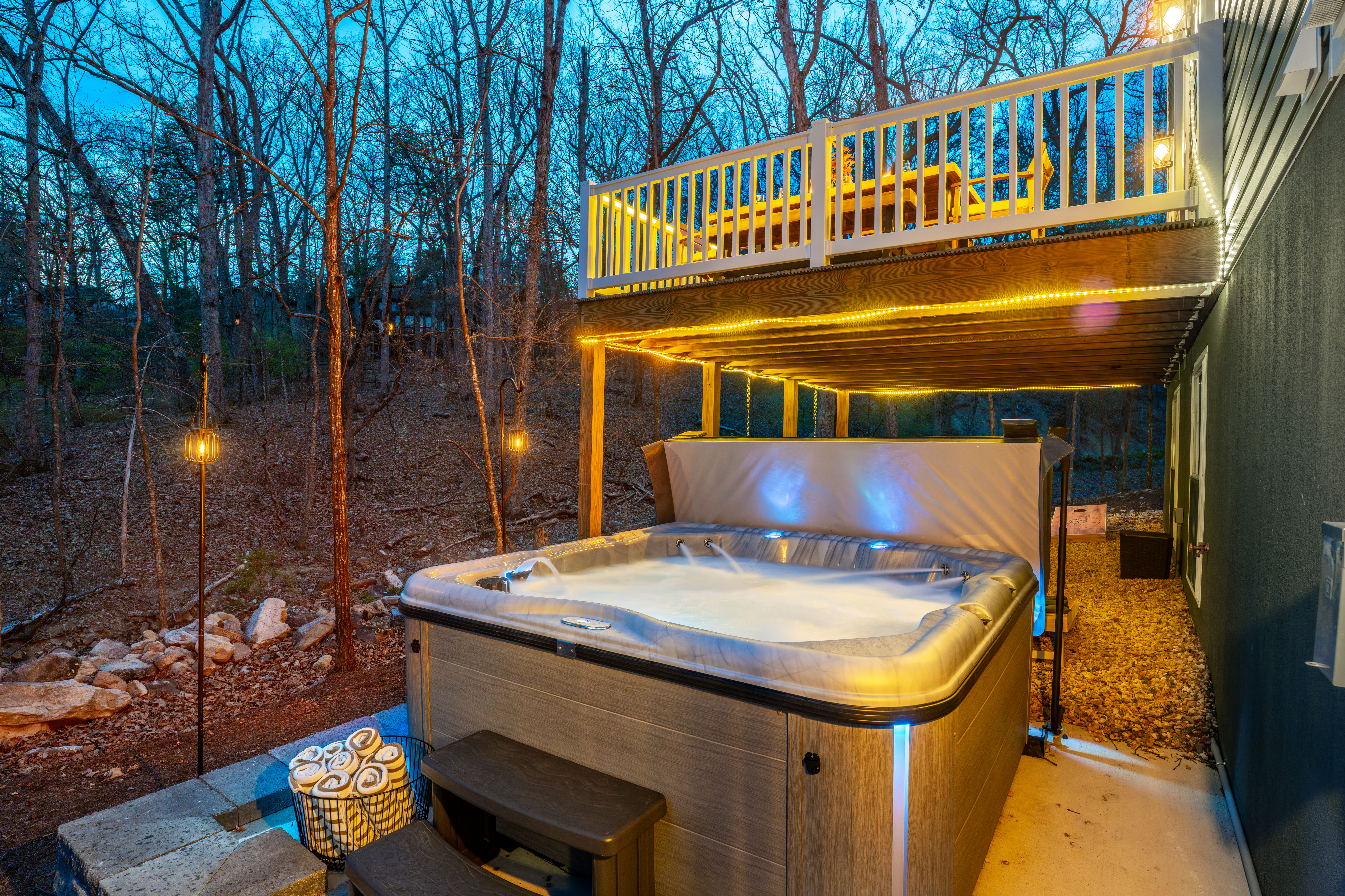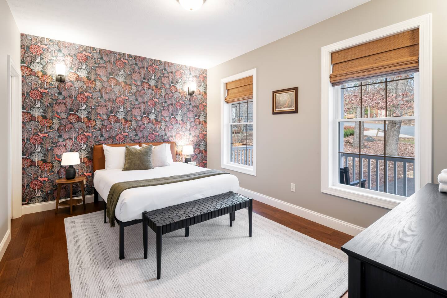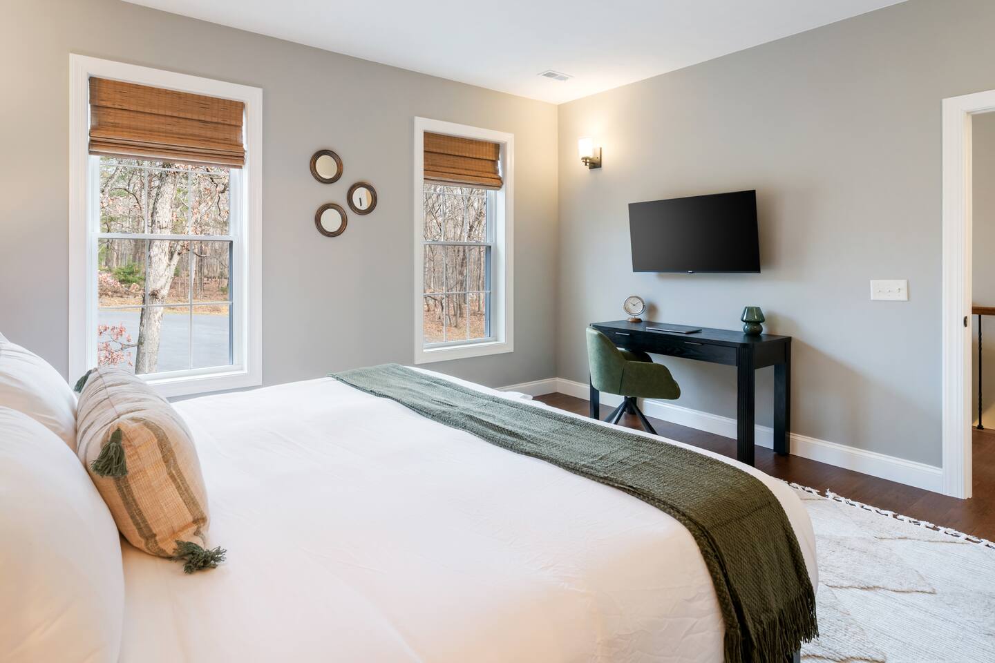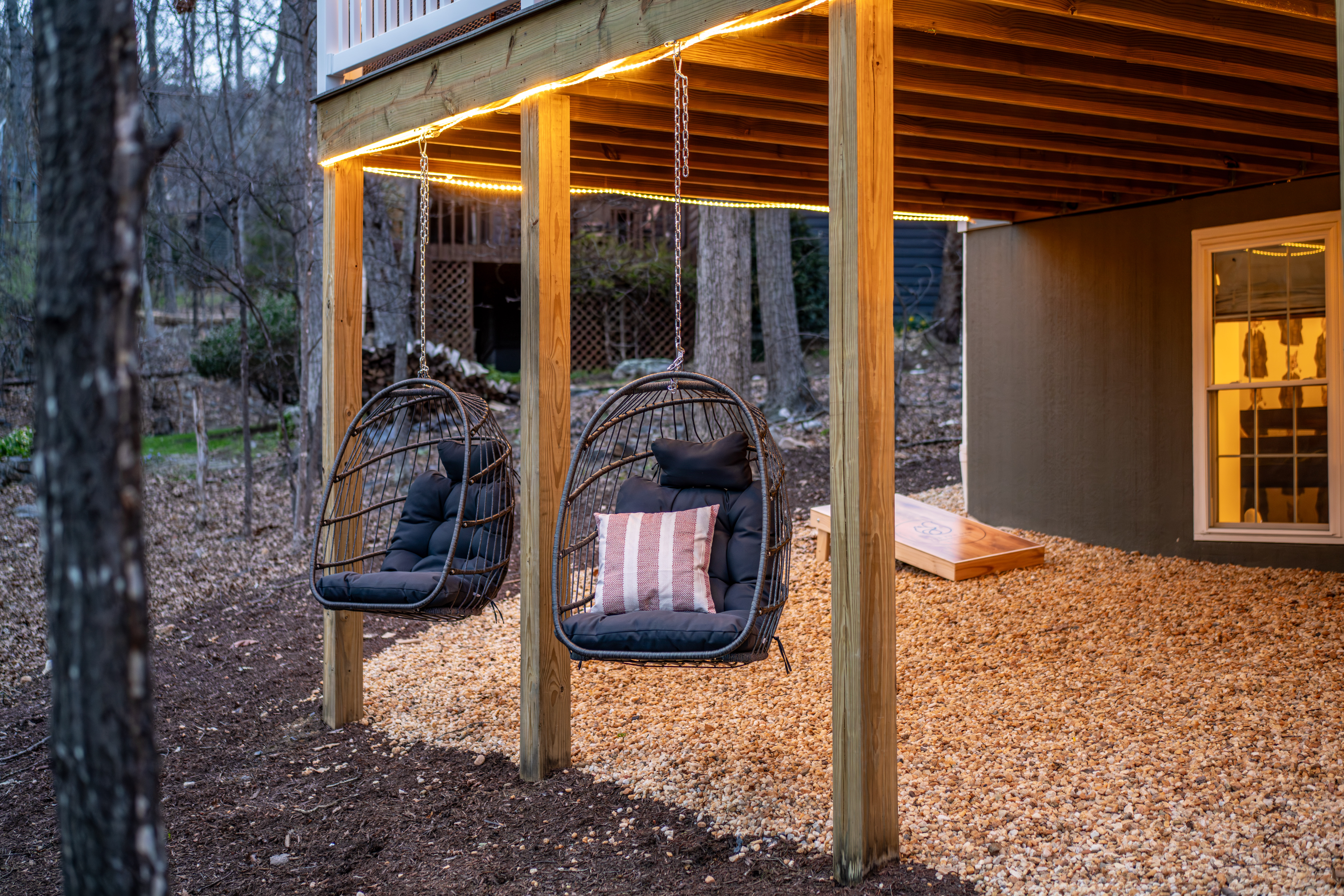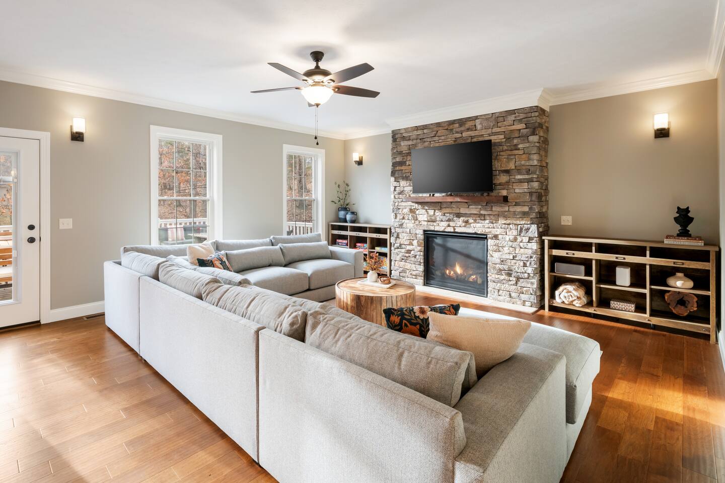 Whether you choose to stay in and enjoy all of the amenities, or explore all that the resort has to offer, The Fox Den has it all! Inside, enjoy 3 levels of well-appointed bedrooms, bathrooms and living spaces, including TWO game rooms, and three en-suites on the top level, each individually curated with a different fox motif. Venture outside to enjoy three separate outdoor areas — a deck with dining, seating and a fire pet, patio with hot tub and ambient lighting, and two seating options on the covered front porch perfect for that morning cup of coffee. With close to 5,000sf of living space, guests can enjoy the following: LIVING ROOM Spacious living area that all flows together from room-to-room, this is truly the heart of the home. Highlights include: ✧ 55” Smart TV with streaming access ✧ Large, oversized sectional for ample seating ✧ Living area room with wraparound sectional for the whole family to cozy up on, an electric fireplace, and bookcases with board games ✧ Entryway with ample coat hooks and shoe storage ✧ Open flow to the kitchen and dining room KITCHEN The fully-equipped kitchen is stocked with every sort of cooking item or entertaining ware you would need for your stay, including two pantries for guest use. Highlights include: ✧ Brand new, stainless steel appliances ✧ Drip and Keurig coffee ✧ Pots, pans and a variety of small appliances and cookware ✧ Indoor and outdoor dining ware as well as kid-friendly ✧ Glasses, glasses and more glasses! Two different sets for indoor and outdoor use ✧ Kitchen island with seating for 4 ✧ Separate dining room with seating for 12 and a buffet with additional entertaining ware for more formal dining occasions PRIMARY BEDROOM Located on the second level, the large primary suite is situated at the rear of the home and includes a luxury ensuite bath — making it your personal retreat and the perfect place to unwind after a day of activities. Highlights include: ✧ King bed with hotel-grade linens ✧ Blackout shades ✧ 50” Smart TV with streaming access ✧ Dresser and closet space ✧ Extra large ensuite with jetted tub/shower combo, separate water closet, his and hers vanity ✧ Full nursery with crib, blackout shades and play area — perfect for the littlest of guests! ADDITIONAL BEDROOM AND BATHROOMS There are 5 additional bedrooms spread out across the three levels. Kids and parents alike can have their own private sanctuaries with bedrooms designed with each in mind on the top and lower levels. Highlights include: ★ Bedroom 1 (main level): Queen bed, blackout shades, dresser, 43” Smart TV, closet ★ Bedroom 2 (second level): King bed, blackout shades, desk and workspace, 43” Smart TV, closet, ensuite bath with shower/tub combo ★ Bedroom 3 (second level): Queen bed, blackout shades, dresser, 43” Smart TV, closet, ensuite bath with shower/tub combo ★ Bedroom 4 (lower level): Two Queen beds, blackout shades, dresser, 43” Smart TV, closet, wall-mounted Connect 4 ★ Bedroom 5 (lower level): L-shaped bunk beds with 4 twin beds + trundle, blackout shades, dresser, 43” Smart TV, infinity game table (with loads of digital board games) GAME ROOMS There are two game rooms for guest enjoyment. The lower level is a true entertainment hub complete with arcade games, putting green and bar area. On the second level, guests can enjoy a board game area with a chess table and a separate reading nook. Highlights of the lower level game room include: ✧ 4 hole putting green ✧ 3 arcade games (Golden Tee, NBA Jam, Pacman) ✧ Bar area ✧ 75” Smart TV and seating area ✧ Bluetooth speaker ✧ Bar games OUTDOOR SPACE There are three outdoor areas for your enjoyment! Whether it’s coffee in the morning, a meal in the evening, or a sunset soak, the outdoor area provides a tranquil escape on the resort. Highlights include: ✧ Hot tub with ambient lighting and towel hooks (fits 7) ✧ Propane fit pit area (seats 8, propane provided) ✧ Dining table (seats 8) ✧ Propane grill (propane provided) ✧ Rocking chairs and glider under a covered front porch LOCATION ✔ 5 minutes to Massanutten Resort (slopes, pool, adventure course) ✔ 6 minutes for golf course(s) ✔ 6 minutes to the Indoor/Outdoor Waterpark ✔ 20 minutes from Swift Run Gap entrance of Shenandoah National Park ✔ 25 minutes to Harrisonburg & JMU ✔ Close to highway access for hiking, wineries, breweries, dining and scenic drives