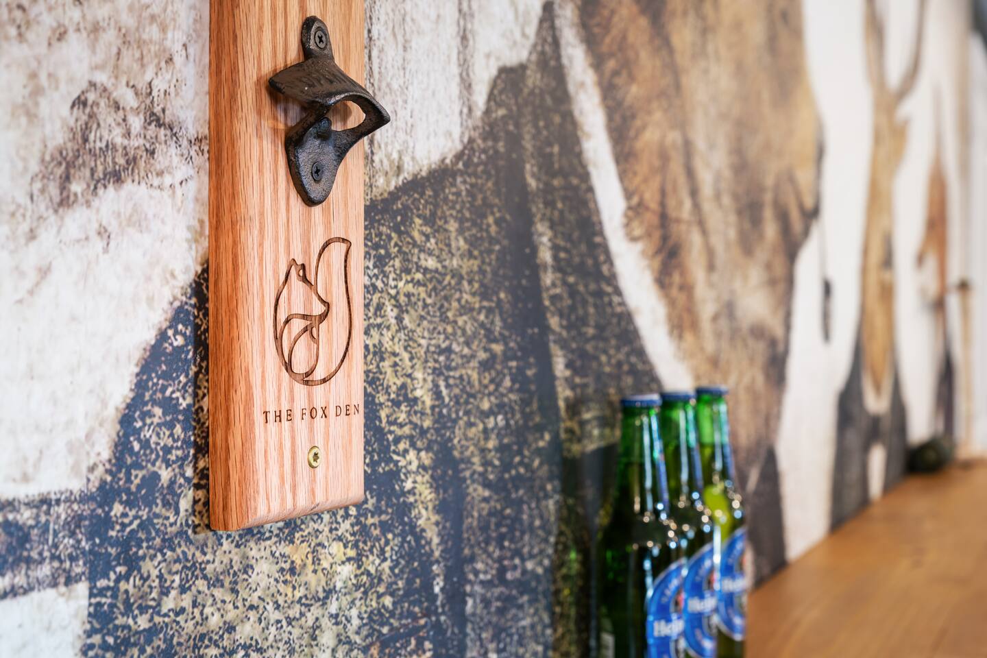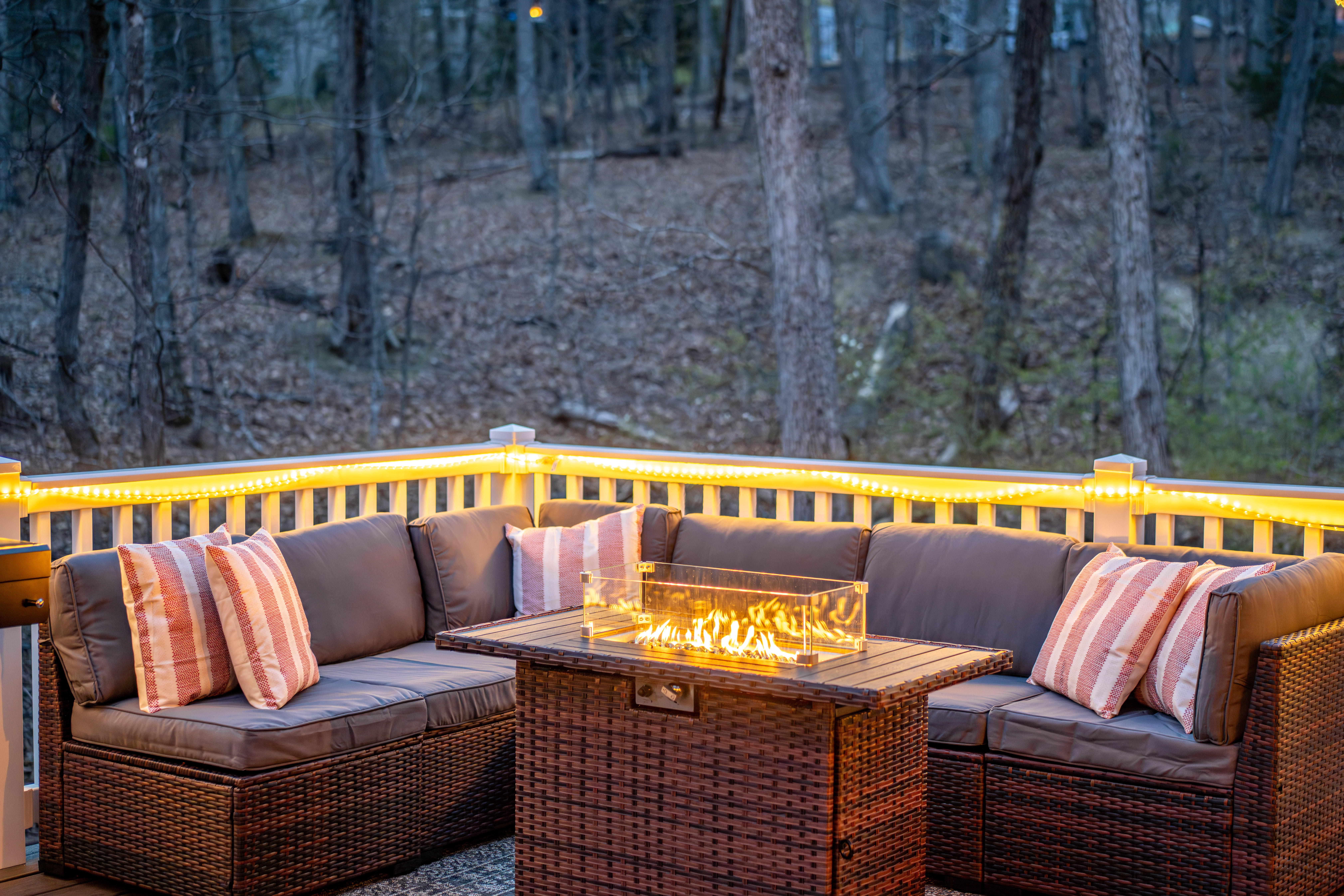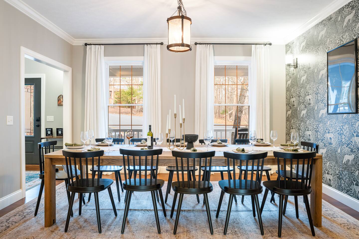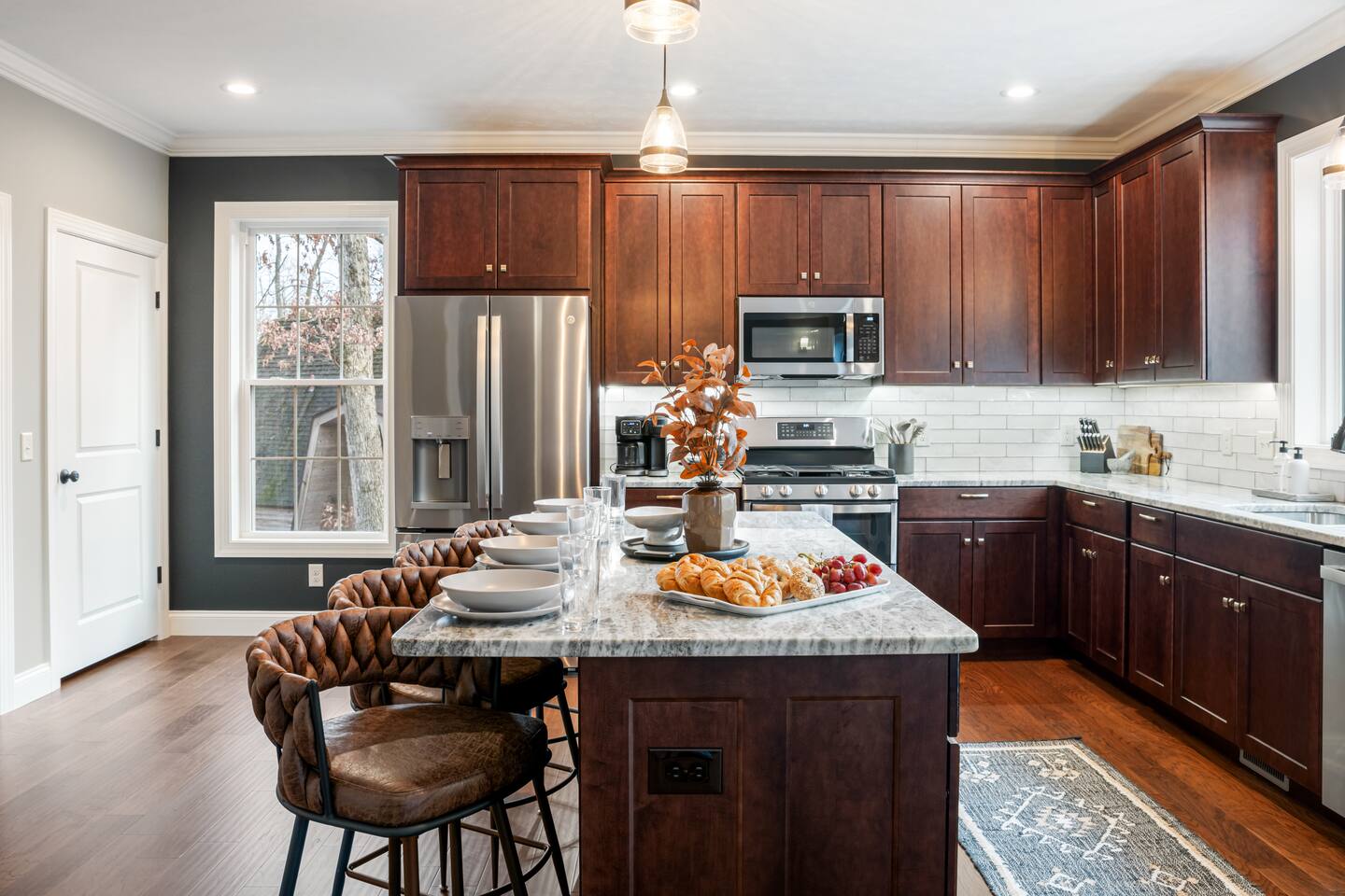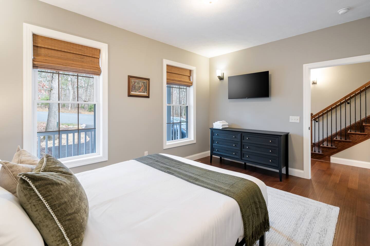 Whether you choose to stay in and enjoy all of the amenities, or explore all that the resort has to offer, The Fox Den has it all! Inside, enjoy 3 levels of well-appointed bedrooms, bathrooms and living spaces, including TWO game rooms, and three en-suites on the top level, each individually curated with a different fox motif. Venture outside to enjoy three separate outdoor areas — a deck with dining, seating and a fire pet, patio with hot tub and ambient lighting, and two seating options on the covered front porch perfect for that morning cup of coffee. With close to 5,000sf of living space, guests can enjoy the following: LIVING ROOM Spacious living area that all flows together from room-to-room, this is truly the heart of the home. Highlights include: ✧ 55” Smart TV with streaming access ✧ Large, oversized sectional for ample seating ✧ Living area room with wraparound sectional for the whole family to cozy up on, an electric fireplace, and bookcases with board games ✧ Entryway with ample coat hooks and shoe storage ✧ Open flow to the kitchen and dining room KITCHEN The fully-equipped kitchen is stocked with every sort of cooking item or entertaining ware you would need for your stay, including two pantries for guest use. Highlights include: ✧ Brand new, stainless steel appliances ✧ Drip and Keurig coffee ✧ Pots, pans and a variety of small appliances and cookware ✧ Indoor and outdoor dining ware as well as kid-friendly ✧ Glasses, glasses and more glasses! Two different sets for indoor and outdoor use ✧ Kitchen island with seating for 4 ✧ Separate dining room with seating for 12 and a buffet with additional entertaining ware for more formal dining occasions PRIMARY BEDROOM Located on the second level, the large primary suite is situated at the rear of the home and includes a luxury ensuite bath — making it your personal retreat and the perfect place to unwind after a day of activities. Highlights include: ✧ King bed with hotel-grade linens ✧ Blackout shades ✧ 50” Smart TV with streaming access ✧ Dresser and closet space ✧ Extra large ensuite with jetted tub/shower combo, separate water closet, his and hers vanity ✧ Full nursery with crib, blackout shades and play area — perfect for the littlest of guests! ADDITIONAL BEDROOM AND BATHROOMS There are 5 additional bedrooms spread out across the three levels. Kids and parents alike can have their own private sanctuaries with bedrooms designed with each in mind on the top and lower levels. Highlights include: ★ Bedroom 1 (main level): Queen bed, blackout shades, dresser, 43” Smart TV, closet ★ Bedroom 2 (second level): King bed, blackout shades, desk and workspace, 43” Smart TV, closet, ensuite bath with shower/tub combo ★ Bedroom 3 (second level): Queen bed, blackout shades, dresser, 43” Smart TV, closet, ensuite bath with shower/tub combo ★ Bedroom 4 (lower level): Two Queen beds, blackout shades, dresser, 43” Smart TV, closet, wall-mounted Connect 4 ★ Bedroom 5 (lower level): L-shaped bunk beds with 4 twin beds + trundle, blackout shades, dresser, 43” Smart TV, infinity game table (with loads of digital board games) GAME ROOMS There are two game rooms for guest enjoyment. The lower level is a true entertainment hub complete with arcade games, putting green and bar area. On the second level, guests can enjoy a board game area with a chess table and a separate reading nook. Highlights of the lower level game room include: ✧ 4 hole putting green ✧ 3 arcade games (Golden Tee, NBA Jam, Pacman) ✧ Bar area ✧ 75” Smart TV and seating area ✧ Bluetooth speaker ✧ Bar games OUTDOOR SPACE There are three outdoor areas for your enjoyment! Whether it’s coffee in the morning, a meal in the evening, or a sunset soak, the outdoor area provides a tranquil escape on the resort. Highlights include: ✧ Hot tub with ambient lighting and towel hooks (fits 7) ✧ Propane fit pit area (seats 8, propane provided) ✧ Dining table (seats 8) ✧ Propane grill (propane provided) ✧ Rocking chairs and glider under a covered front porch LOCATION ✔ 5 minutes to Massanutten Resort (slopes, pool, adventure course) ✔ 6 minutes for golf course(s) ✔ 6 minutes to the Indoor/Outdoor Waterpark ✔ 20 minutes from Swift Run Gap entrance of Shenandoah National Park ✔ 25 minutes to Harrisonburg & JMU ✔ Close to highway access for hiking, wineries, breweries, dining and scenic drives