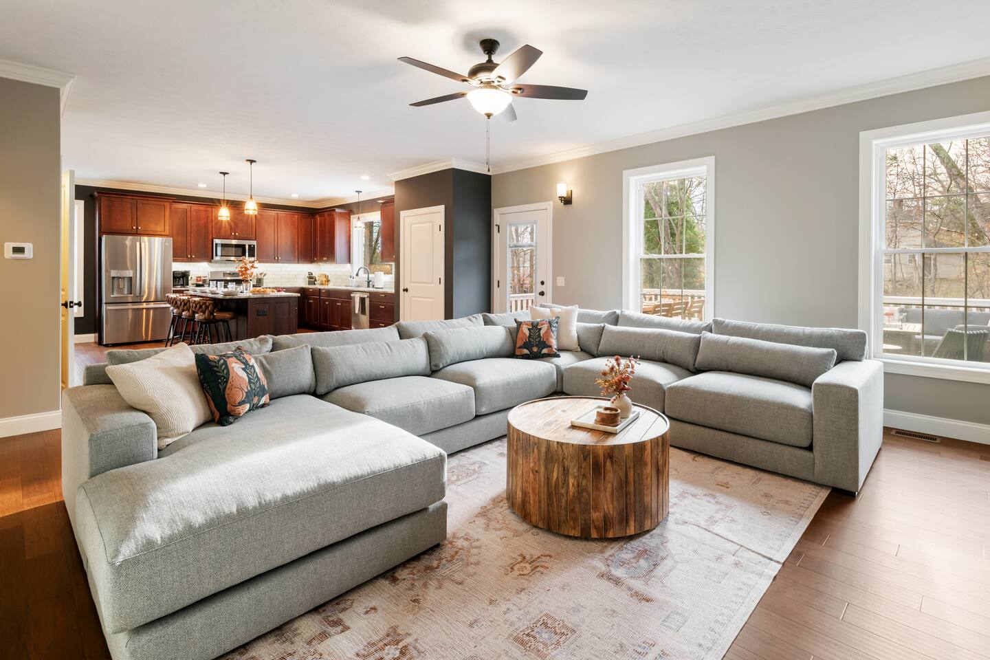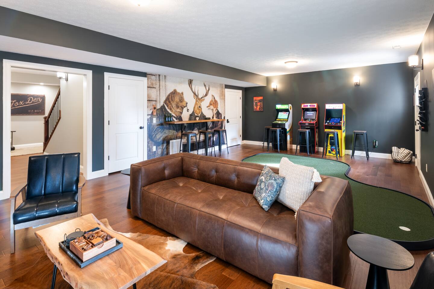 Welcome to The Fox Den, a new construction designer home in the heart of Massanutten. With nearly 5000 sq ft, 6 bedrooms, 5 full bathrooms and a nursery, the house sleeps 16 comfortably. Outside, enjoy the new hot tub, gas firepit, and outdoor dining. Inside, you'll love the gourmet kitchen and multiple common areas, including a rec room with putting green, big screen TV, and multiple arcade machines. Plus, pet friendly! Managed by Chris at New School Hosting- click my profile for more reviews.